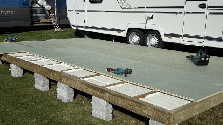 Golv i helårstält har vattentäta spånplattor. För att säkra lång levnadstid och kvalitet använder vi fundament av betong under trallgolv och terrass.